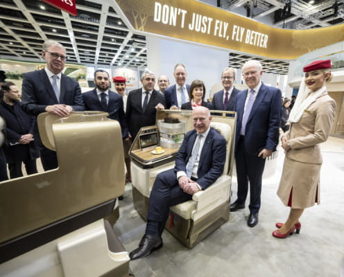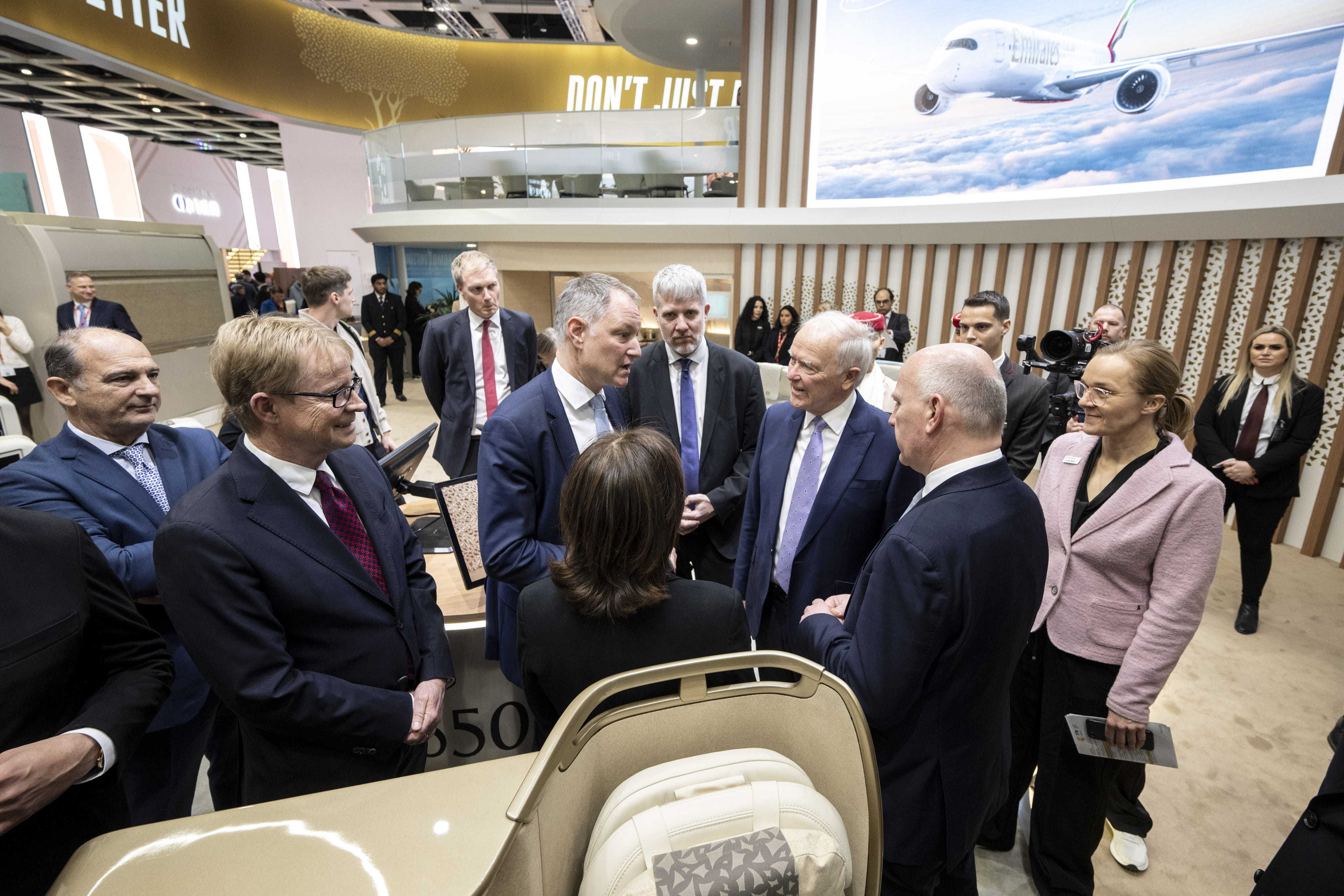واطلع الوفد رفيع المستوى خلال الجولة على أحدث ميزات مقصورة طائرة الإمارات الإيرباص A350 والتي تعرضها لأول مرة في ألمانيا، بالإضافة إلى منتجات الناقلة الشهيرة الأخرى بما في ذلك جناح طيران الإمارات للدرجة الأولى " Gamechanger".