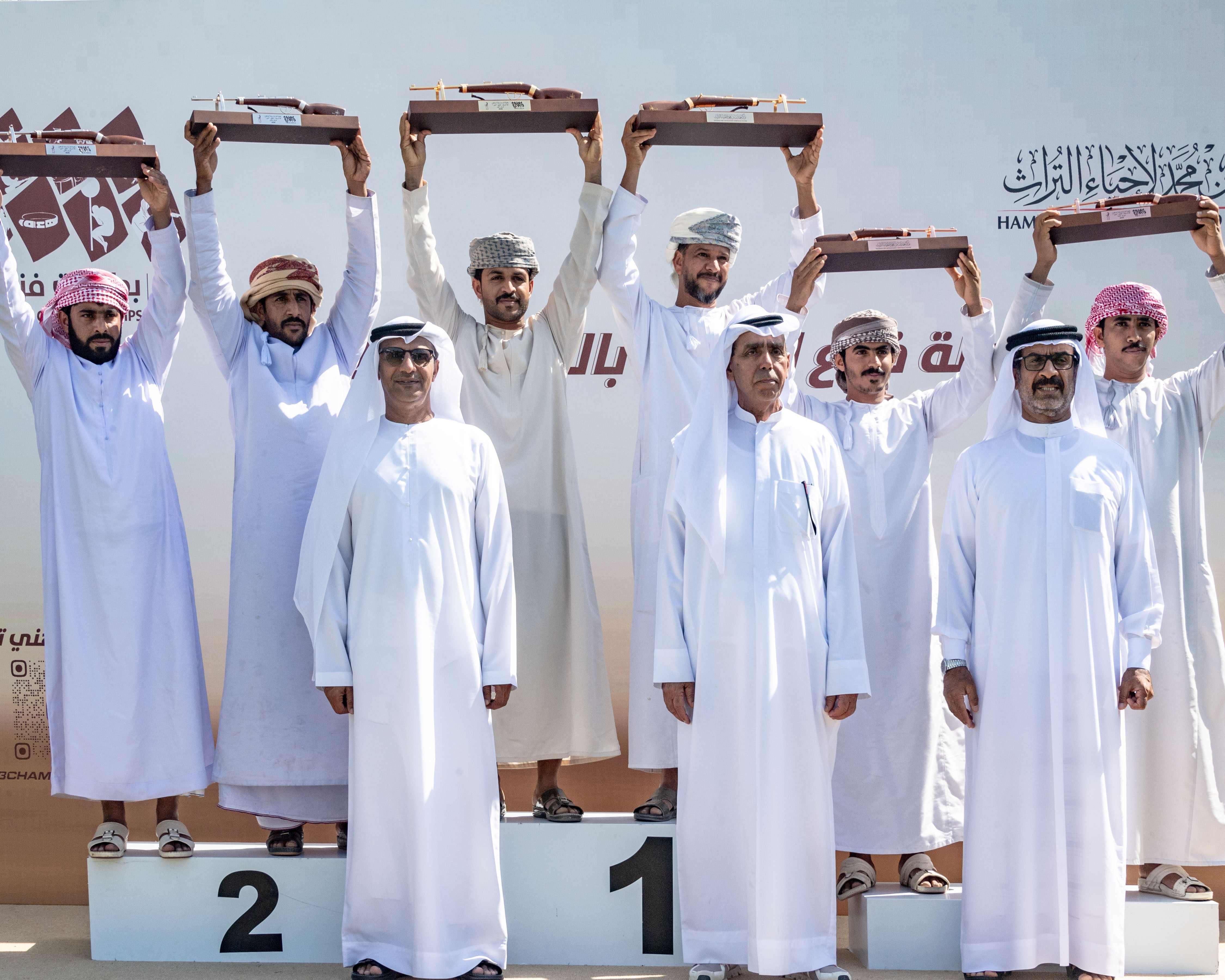 وتم تتويج أصحاب المراكز الأولى بحضور سعادة محمد سهيل النيادي رئيس اتحاد الإمارات للرماية، وسعادة عبد الله حمدان بن دلموك الرئيس التنفيذي لمركز حمدان بن محمد لإحياء التراث، والعميد "م" محمد عبيد المهيري، رئيس اللجنة المنظمة للبطولة، وراشد حارب الخاصوني مدير إدارة البطولات في المركز، وعدد من أعضاء اللجنة المنظمة.