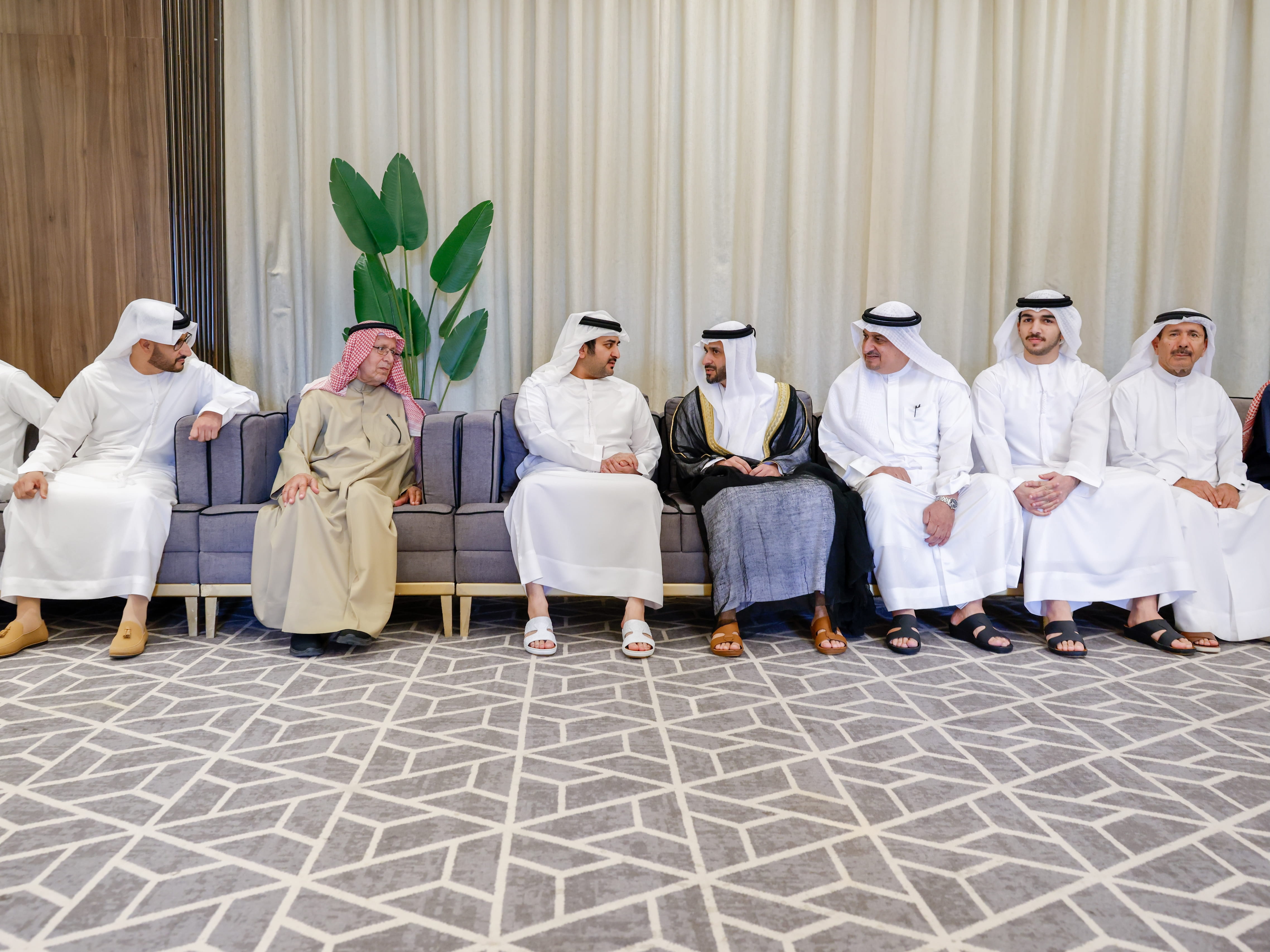 حضر سمو الشيخ مكتوم بن محمد بن راشد آل مكتوم، النائب الأول لحاكم دبي نائب رئيس مجلس الوزراء وزير المالية، وإلى جانبه سموّ الشيخ محمد بن راشد بن محمد بن راشد آل مكتوم، حفل الاستقبال الذي أقامه محمد عبدالله الحمادي اليوم السبت، في مجلس الخوانيج في دبي، بمناسبة زفاف نجله عبدالله محمد الحمادي على كريمة صالح محمد الرفيع.
