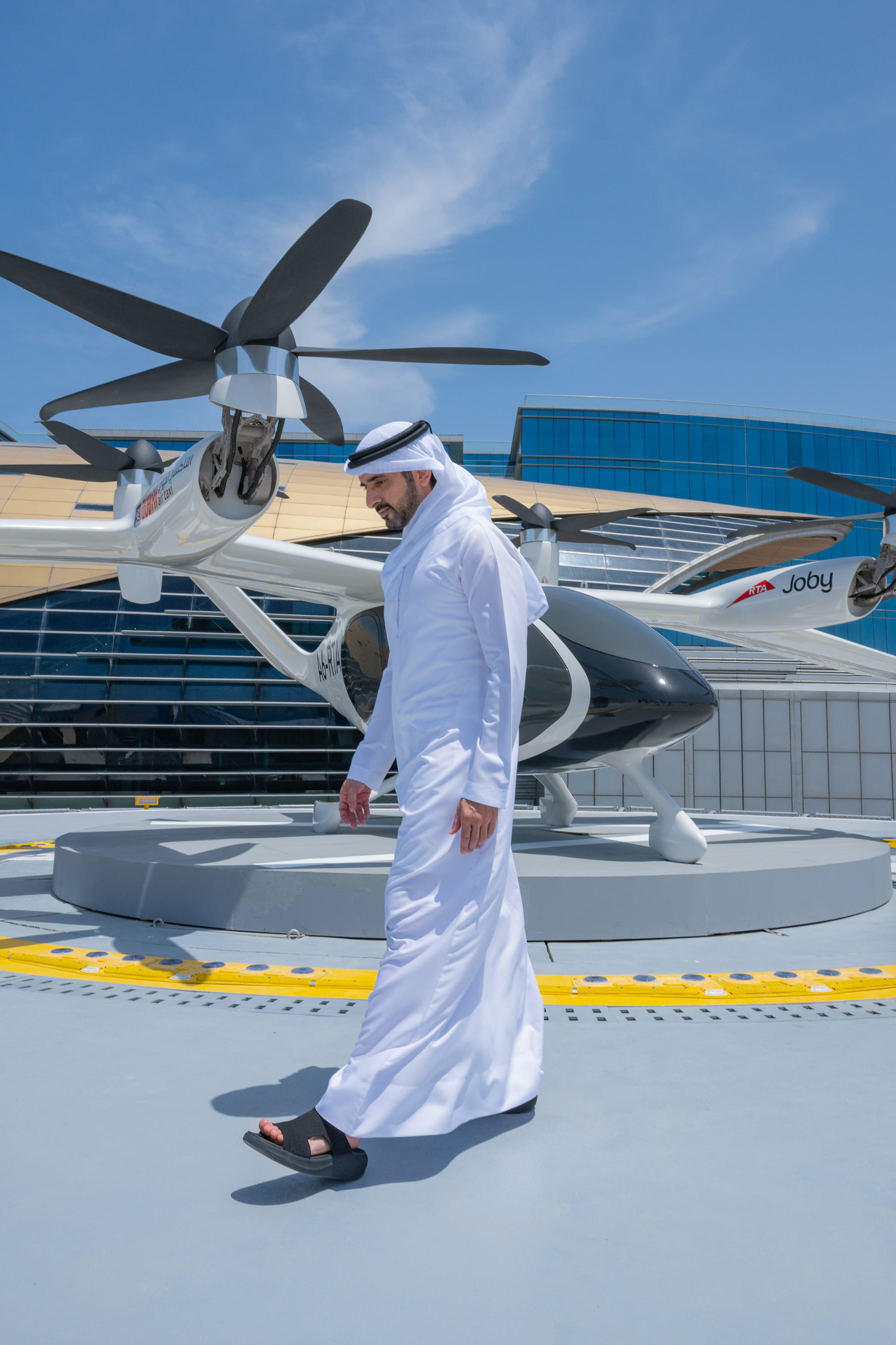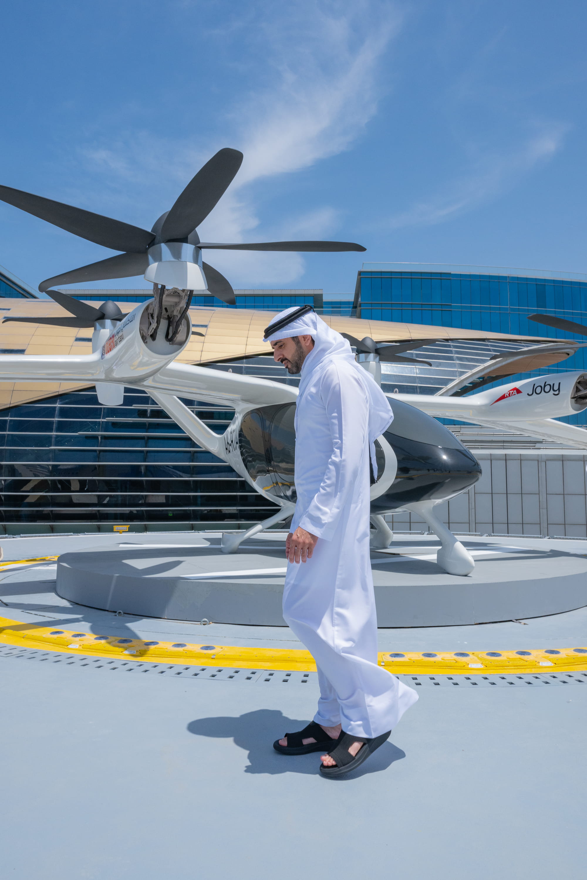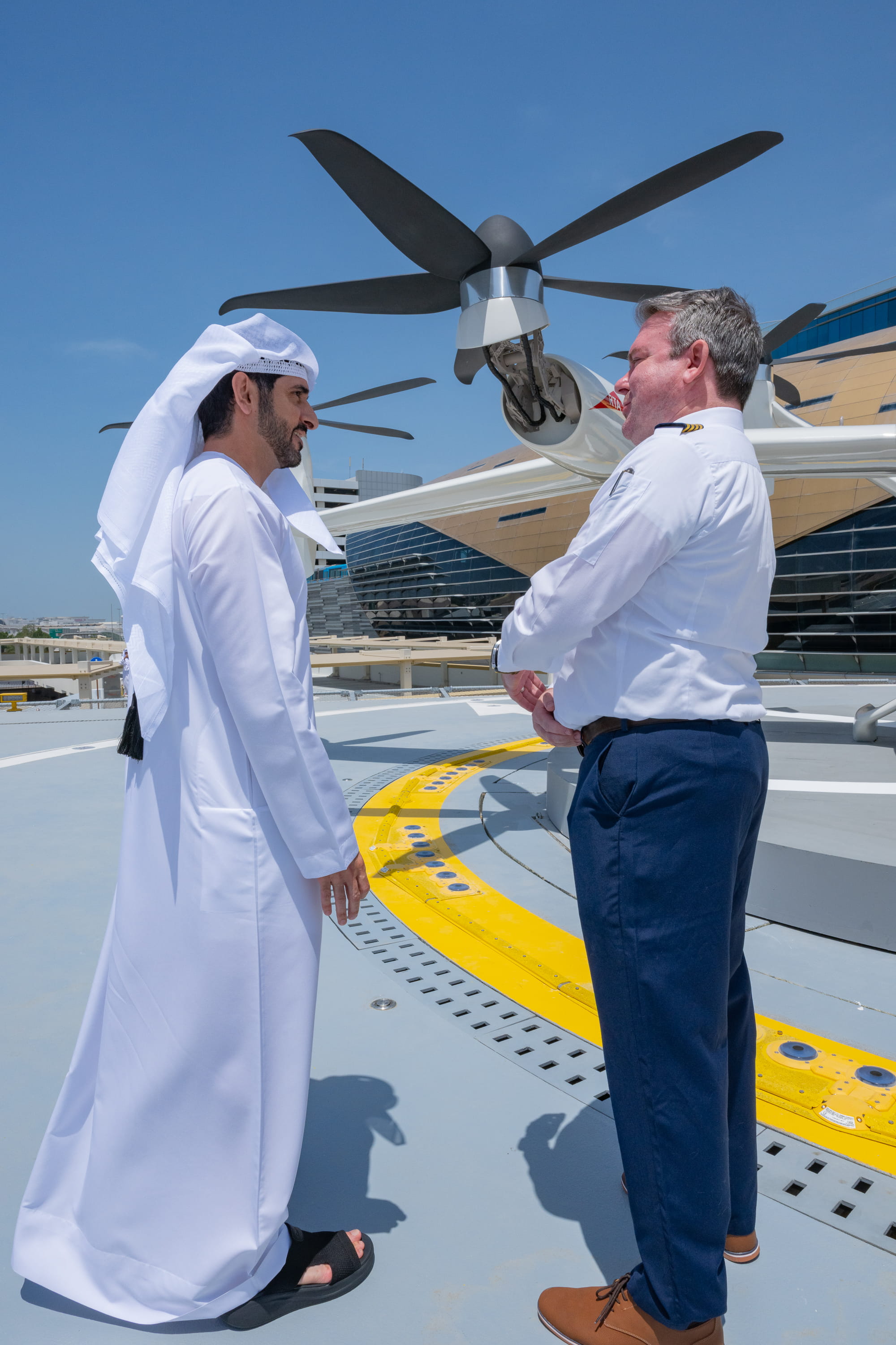 Upon arrival at the station site, His Highness was received by His Excellency Mattar Al Tayer, Director General, Chairman of the Board of Executive Directors of Dubai’s Roads and Transport Authority (RTA), His Excellency Mohammed Abdulla Lengawi, Director General of the Dubai Civil Aviation Authority, Duncan Walker, CEO of Skyports Infrastructure, and Anthony El-Khoury, General Manager of Joby Aviation.
