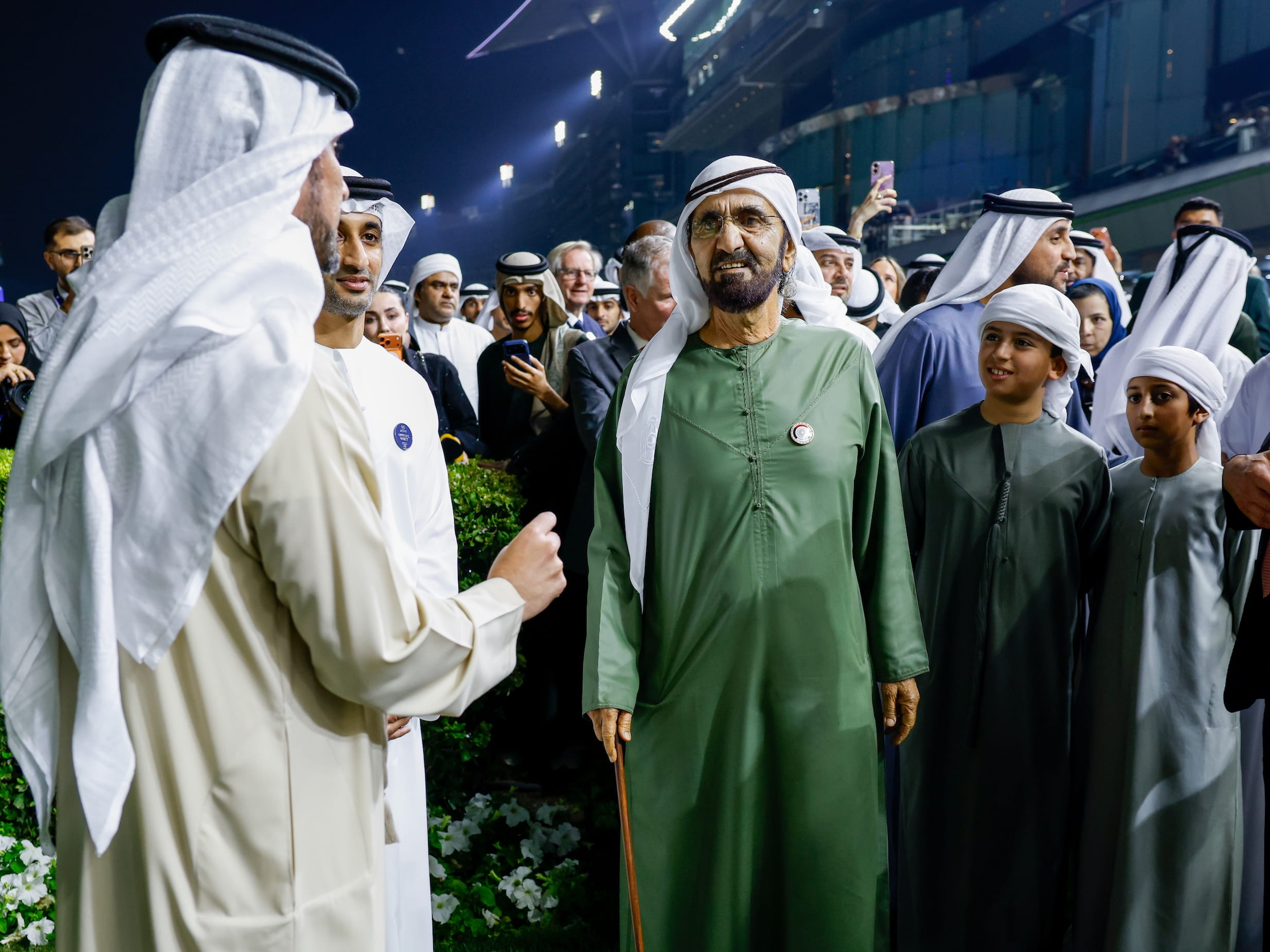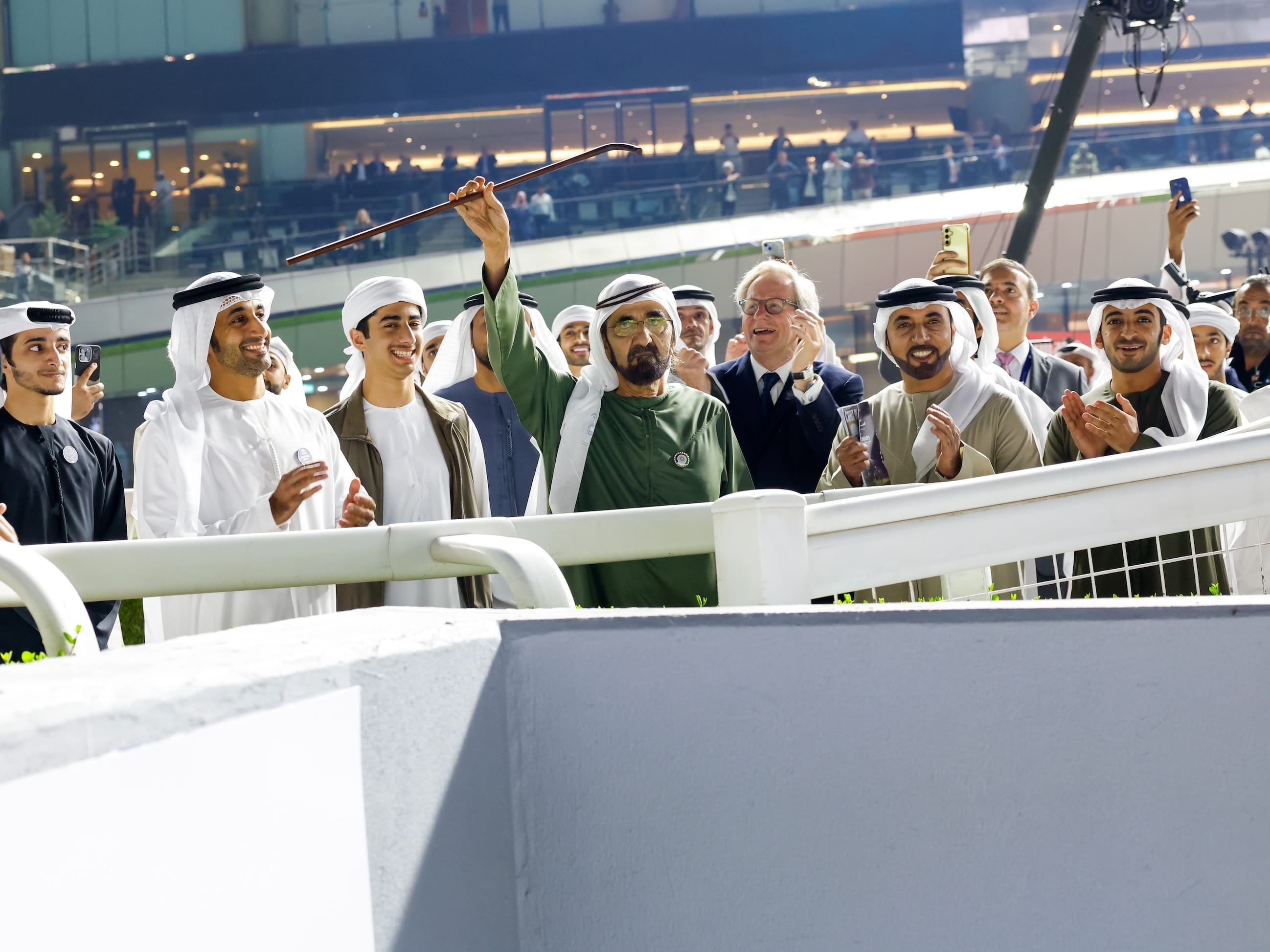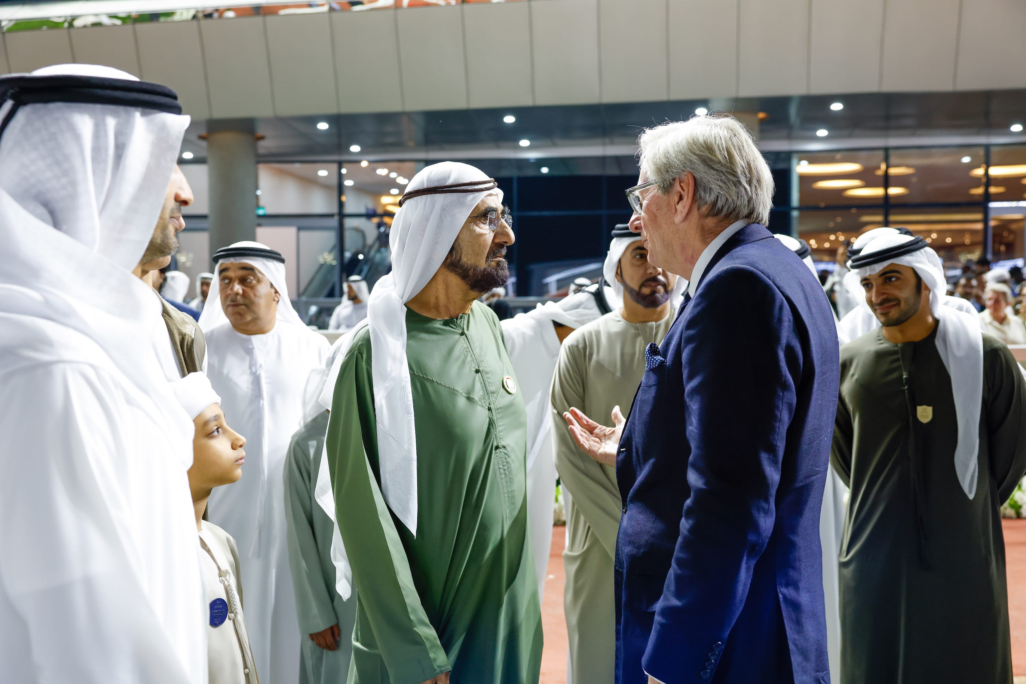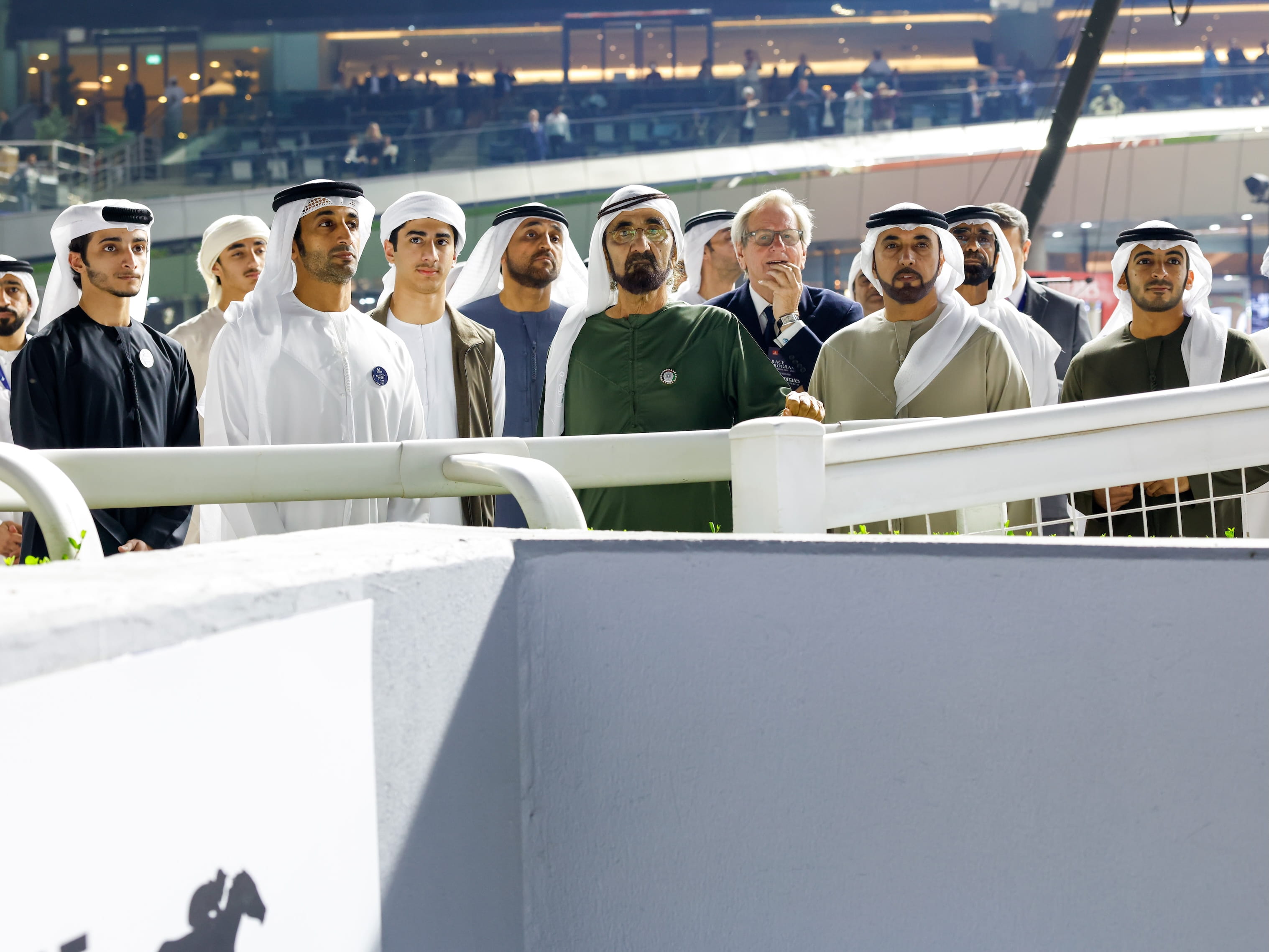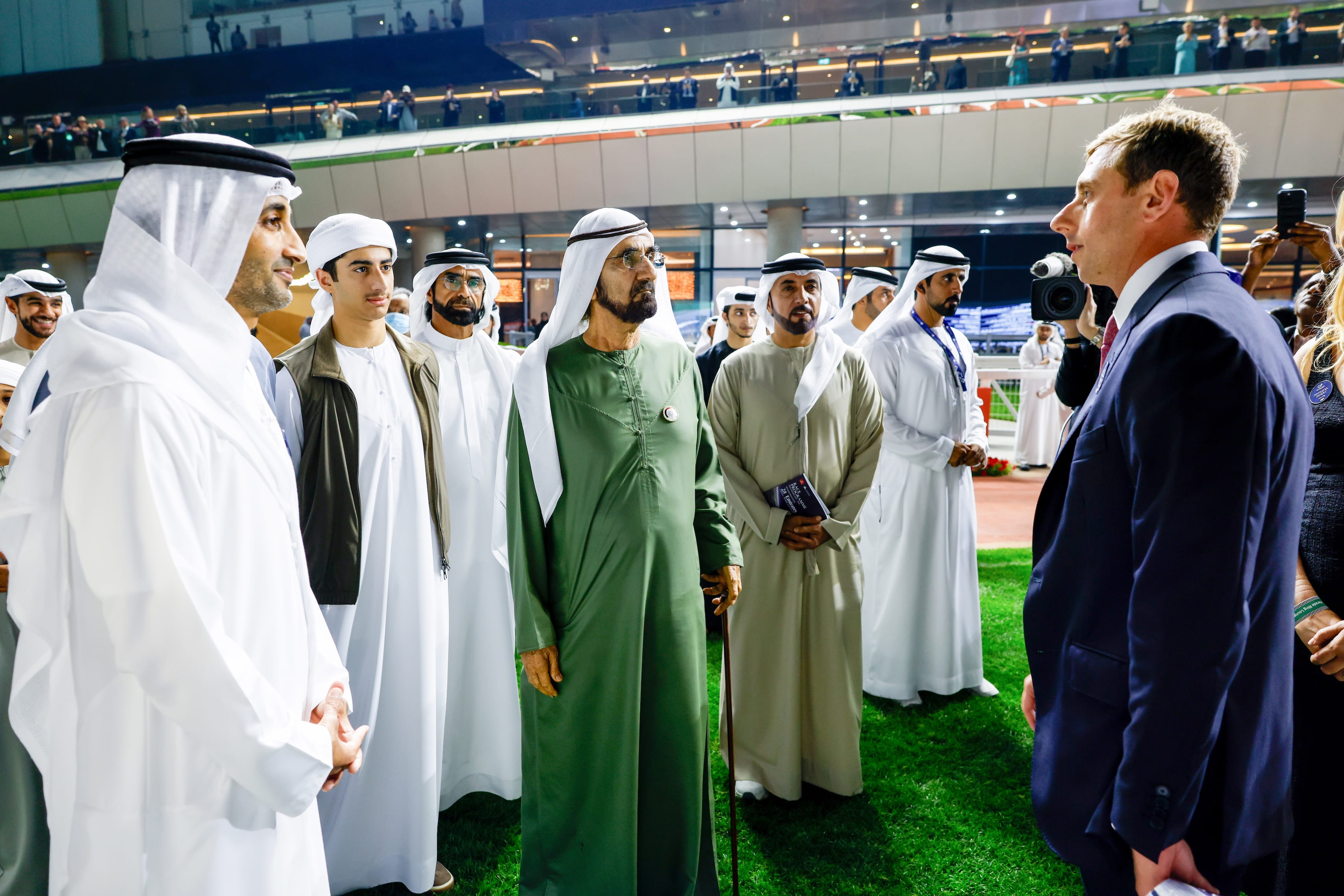 His Highness Sheikh Mohammed bin Rashid was accompanied by Sheikh Rashed bin Dalmook bin Juma Al Maktoum, Chairman of the Dubai Racing Club.