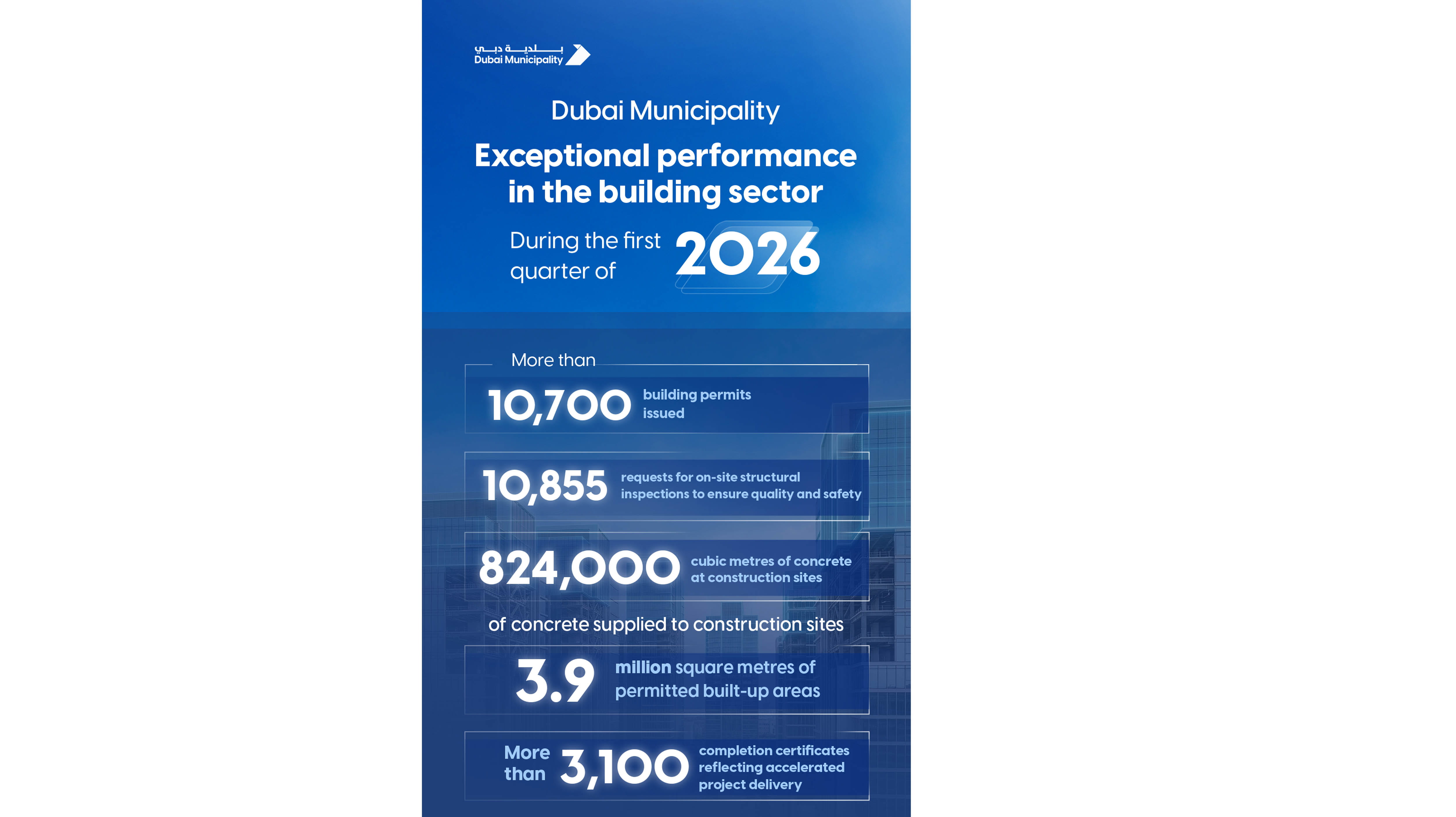 Dubai Municipality reported strong performance indicators in the building and construction sector during the first quarter of 2026, reflecting sustained development momentum across the emirate and a highly attractive investment environment that continues to reinforce Dubai’s position as a leading global destination for sustainable urban development.